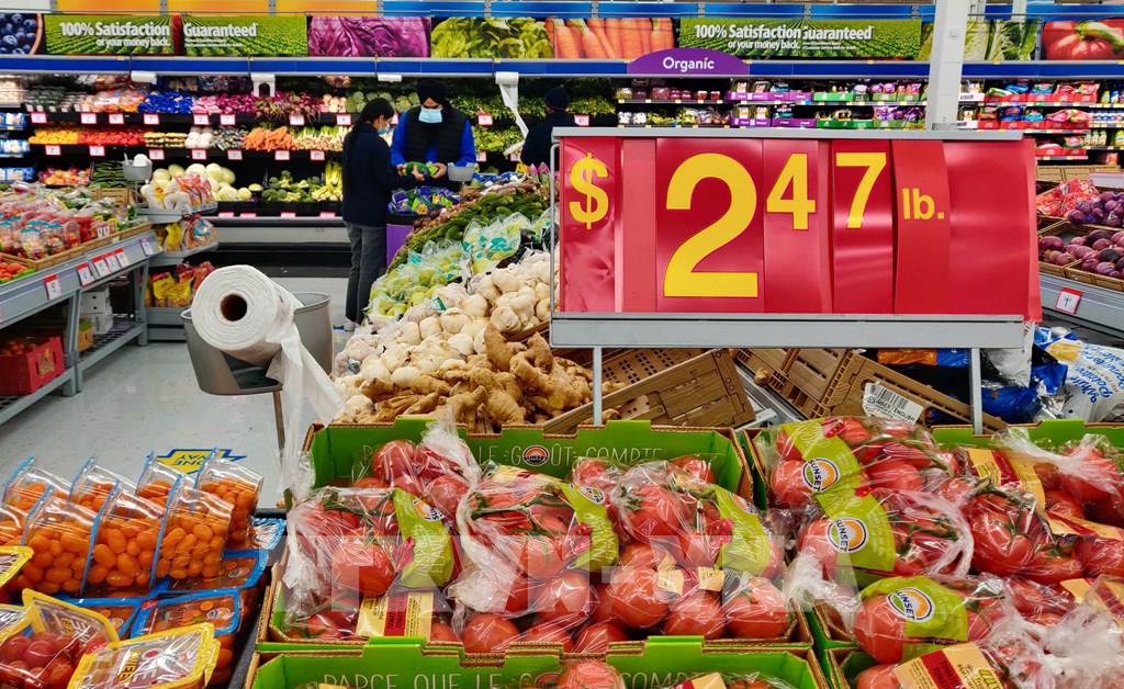 Tổng Giám đốc Quỹ Tiền tệ quốc tế (IMF) Kristalina Georgieva ngày 6/7/2022 đánh giá triển vọng kinh tế toàn cầu “đã xấu đi đáng kể” từ tháng 4 vừa qua và không thể loại trừ khả năng suy thoái toàn cầu trong năm 2023 khi xét đến những nguy cơ đang gia tăng. Trong ảnh: Giá thực phẩm được niêm yết tại siêu thị ở Mississauga, Ontario, Canada. Ảnh: THX/ TTXVN
