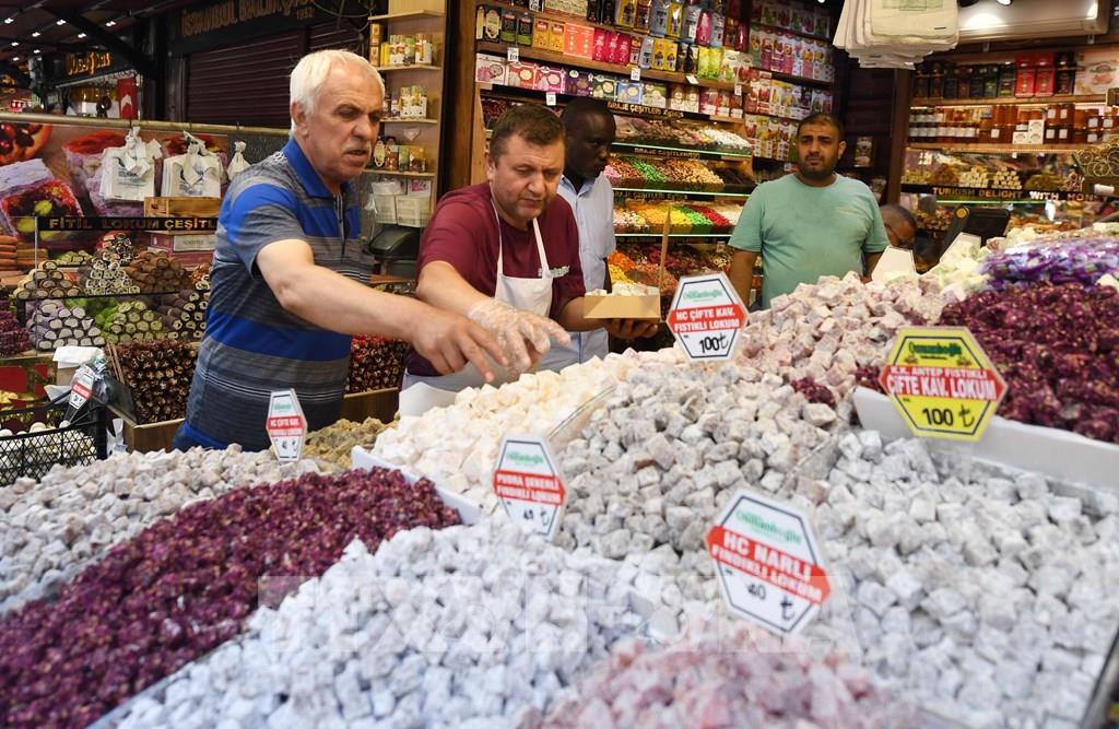 Tổng Giám đốc Quỹ Tiền tệ quốc tế (IMF) Kristalina Georgieva ngày 6/7/2022 đánh giá triển vọng kinh tế toàn cầu “đã xấu đi đáng kể” từ tháng 4 vừa qua và không thể loại trừ khả năng suy thoái toàn cầu trong năm 2023 khi xét đến những nguy cơ đang gia tăng. Trong ảnh: Người dân mua hàng tại một khu chợ ở Istanbul, Thổ Nhĩ Kỳ, ngày 6/7/2022. Ảnh: THX/ TTXVN