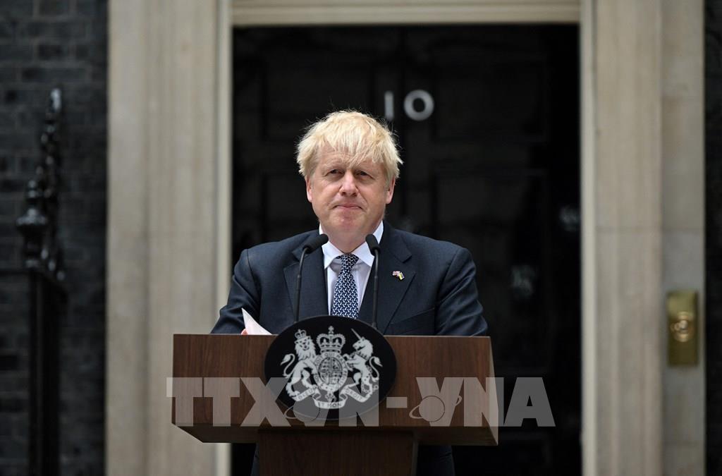 Thủ tướng Anh Boris Johnson ngày 7/7/2022 thông báo từ chức lãnh đạo đảng Bảo thủ, mở đường cho việc bầu chọn một Thủ tướng mới, sau khi hàng chục Bộ trưởng rời khỏi Chính phủ. Phát biểu tại số 10 Phố Downing, ông Johnson, 58 tuổi, cho biết ông sẽ tiếp tục đảm nhiệm cương vị Thủ tướng cho đến khi đảng bầu chọn được người kế nhiệm. Ảnh: THX/ TTXVN