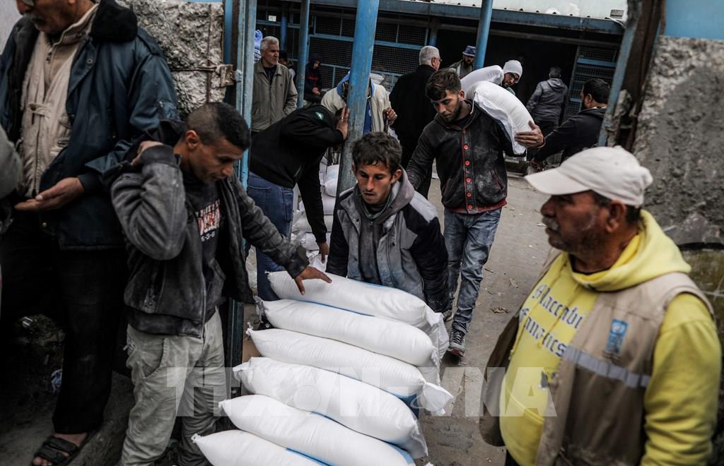 Ngày 7/4/2021, Tổng thống Mỹ Joe Biden thông báo quyết định nối lại viện trợ cho Palestine ở mức 235 triệu USD. Trong khoản tiền trên, Mỹ sẽ đóng góp 150 triệu USD cho Cơ quan Liên hợp quốc cứu trợ người tị nạn Palestine (UNRWA), viện trợ 75 triệu USD để hỗ trợ kinh tế và phát triển tại Bờ Tây cùng Dải Gaza và 10 triệu USD cho những nỗ lực xây dựng hòa bình. Trong ảnh (tư liệu): Người dân Palestine nhận hàng viện trợ từ UNRWA, tại Dải Gaza ngày 1/3/2020. Ảnh: AFP/TTXVN