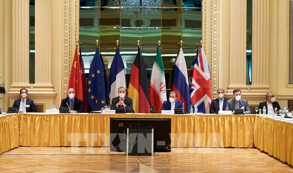 Ngày 6/4/2021, tại thủ đô Vienna của Áo, Ủy ban Hỗn hợp về Kế hoạch Hành động Chung Toàn diện (JCPOA) đã bắt đầu nối lại cuộc đàm phán nhằm cứu vãn thỏa thuận hạt nhân lịch sử được ký năm 2015 giữa Iran và các cường quốc thế giới. Các bên còn lại tham gia thỏa thuận, gồm Trung Quốc, Nga, Đức, Pháp, Anh gặp gỡ trực tiếp với Iran, trong khi phía Mỹ tham gia gián tiếp. Ảnh: THX/ TTXVN