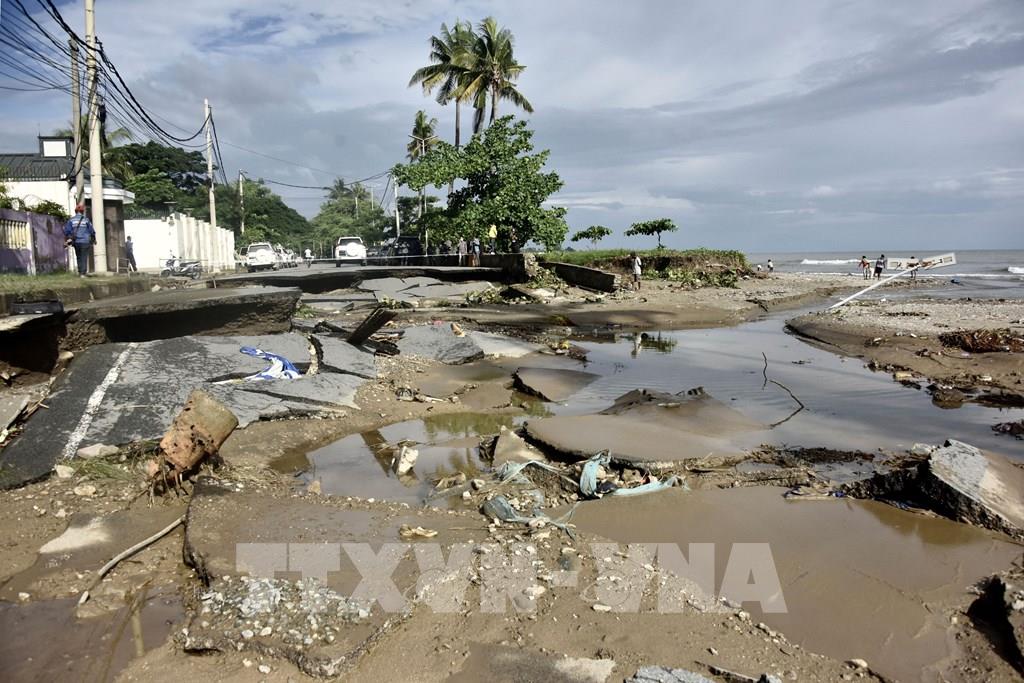 Ngày 6/4/2021, nhà chức trách Indonesia và nước láng giềng Timor Leste thông báo đã có ít nhất 157 người thiệt mạng và hàng chục người vẫn còn mất tích sau khi cơn bão nhiệt đới Seroja tấn công hai quốc gia Đông Nam Á này, gây lở đất, lũ quét và khiến hàng nghìn người mất nhà cửa. Trong ảnh: Tuyến đường bị phá hủy do lũ quét tại thủ đô Dili, Timor Leste ngày 6/4/2021. Ảnh: AFP/TTXVN