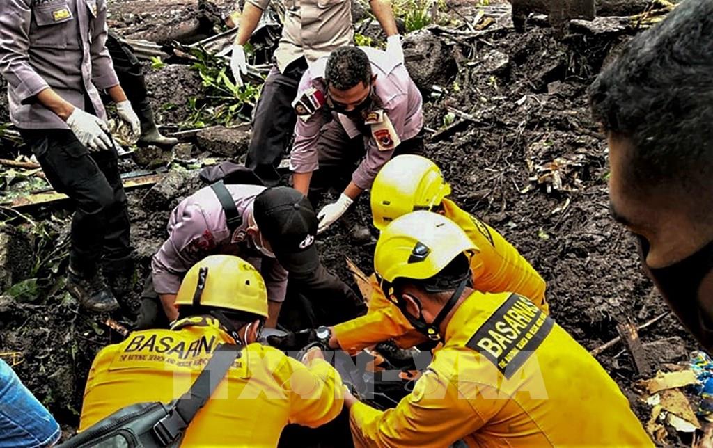 Ngày 6/4/2021, nhà chức trách Indonesia và nước láng giềng Timor Leste thông báo đã có ít nhất 157 người thiệt mạng và hàng chục người vẫn còn mất tích sau khi cơn bão nhiệt đới Seroja tấn công hai quốc gia Đông Nam Á này, gây lở đất, lũ quét và khiến hàng nghìn người mất nhà cửa. Trong ảnh: Lực lượng cứu hộ tìm kiếm nạn nhân sau mưa lũ ở Flores Timur, Đông Nusa Tenggara, Indonesia, ngày 6/4/2021. Ảnh: THX/ TTXVN