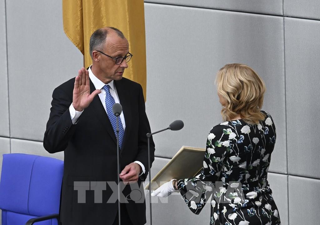 Chiều 6/5/2025, tại trụ sở Quốc hội Liên bang, ông Friedrich Merz đã tuyên thệ nhậm chức Thủ tướng Cộng hòa Liên bang Đức, chính thức trở thành vị Thủ tướng thứ 10 của nước này, kế nhiệm ông Olaf Scholz, người đứng đầu chính phủ “đèn giao thông” trong hơn 3 năm. Ảnh: AA/TTXVN