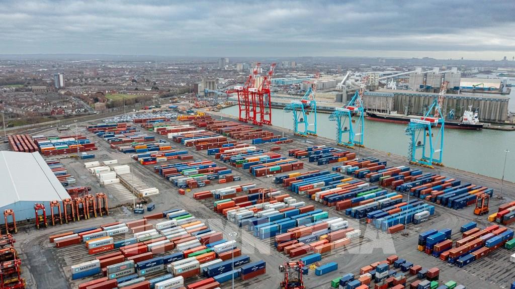 Ngày 8/5/2025, Anh trở thành quốc gia đầu tiên đạt thỏa thuận thương mại với Mỹ kể từ khi Nhà Trắng công bố mức thuế quan toàn diện vào tháng trước. Ảnh: Cảng hàng hóa Liverpool, Anh. Ảnh: THX/TTXVN