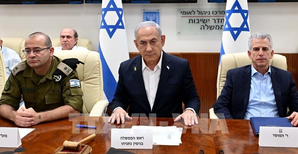 Ngày 5/5/2025, giới chức Israel cho biết nội các an ninh của nước này đã nhất trí với kế hoạch mở rộng các hoạt động quân sự trên bộ ở Dải Gaza nhằm gia tăng sức ép với lực lượng Hamas trong việc giải cứu các con tin. Ảnh: Thủ tướng Israel Benjamin Netanyahu (giữa) gọi đây là "giai đoạn tiếp theo" của cuộc chiến ở Gaza. Ảnh: THX/TTXVN