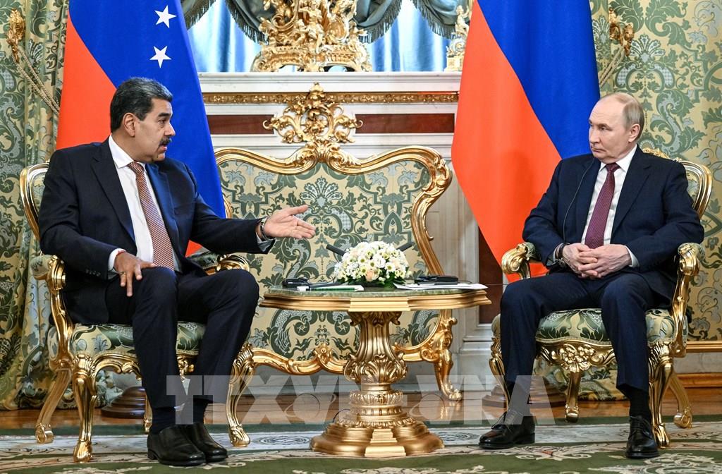 Ngày 7/5/2025, tại Moskva, Tổng thống Nga Vladimir Putin và Tổng thống Venezuela Nicolas Maduro đã ký thỏa thuận về quan hệ đối tác chiến lược và hợp tác giữa hai nước. Ảnh: AA/TTXVN
