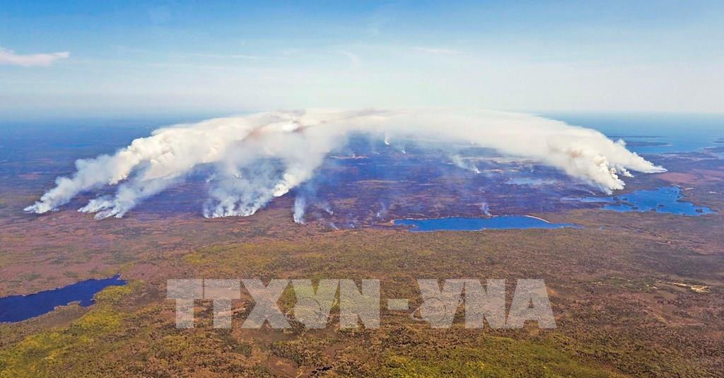 Đất nước Canada rộng lớn đang đối mặt với thảm họa cháy rừng chưa từng có với hơn 2.200 vụ, thiêu rụi hơn 3,3 triệu ha rừng tính từ đầu năm đến nay. Khoảng 120.000 người dân ở 6 tỉnh và vùng lãnh thổ đã phải sơ tán, trong đó, 26.000 người vẫn chưa thể trở về. Khói của cháy rừng cũng đang bao phủ một khu vực rộng lớn và lan sang cả quốc gia láng giềng Mỹ, khiến Cơ quan Môi trường hai nước phải ra cảnh báo đặc biệt về chất lượng không khí. Ảnh: Khói bốc lên từ đám cháy rừng ở Nova Scotia, Canada. THX/TTXVN
