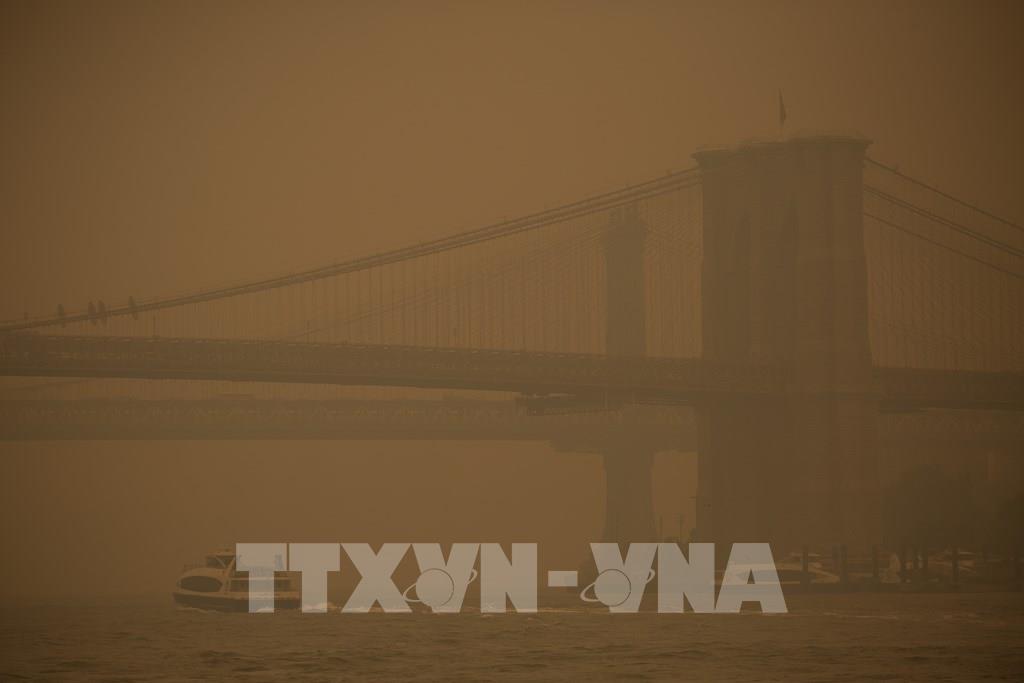 Đất nước Canada rộng lớn đang đối mặt với thảm họa cháy rừng chưa từng có với hơn 2.200 vụ, thiêu rụi hơn 3,3 triệu ha rừng tính từ đầu năm đến nay. Khoảng 120.000 người dân ở 6 tỉnh và vùng lãnh thổ đã phải sơ tán, trong đó, 26.000 người vẫn chưa thể trở về. Khói của cháy rừng cũng đang bao phủ một khu vực rộng lớn và lan sang cả quốc gia láng giềng Mỹ, khiến Cơ quan Môi trường hai nước phải ra cảnh báo đặc biệt về chất lượng không khí. Ảnh: Khói mù do cháy rừng ở Canada bao trùm thành phố New York (Mỹ) ngày 7/6/2023. THX/TTXVN
