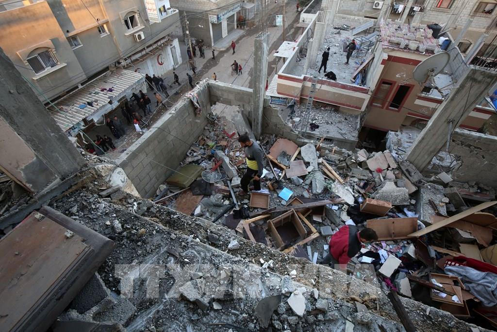 Tối 4/1/2025, cơ quan y tế Dải Gaza cho biết quân đội Israel đã tiến hành 94 vụ không kích và pháo kích nhằm vào Dải Gaza, khiến 184 người thiệt mạng. Ảnh: Cảnh đổ nát sau các cuộc không kích của Israel xuống Dải Gaza. Ảnh: THX/TTXVN