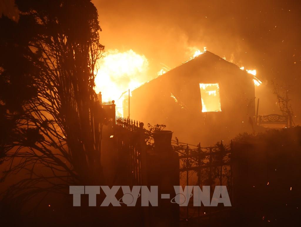 Ngày 9/1/2025, các đám cháy rừng dữ dội tiếp tục hoành hành tại khu vực Los Angeles (Mỹ), khiến 180.000 người phải sơ tán. Giới chức Los Angeles cảnh báo số nạn nhân thiệt mạng có thể còn tăng, ngoài 5 trường hợp đã xác nhận. Ảnh: THX/TTXVN