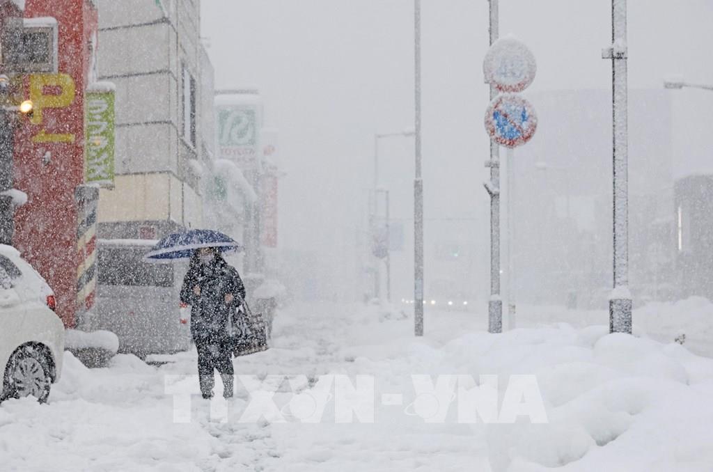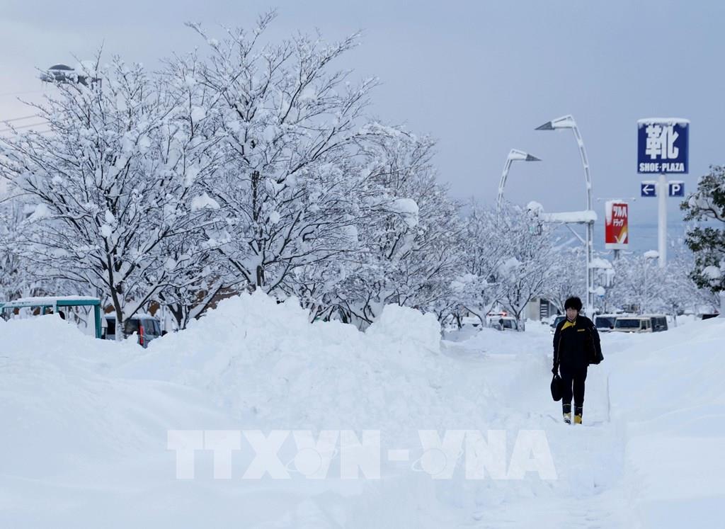 Ngày 8/1/2025, Cơ quan Khí tượng Nhật Bản (JMA) đã cảnh báo về tuyết rơi dày và gió cực mạnh trên khắp miền Bắc và miền Tây nước này, đặc biệt là các khu vực dọc theo bờ biển Biển Nhật Bản. Ảnh: Tuyết rơi dày tại Yamagata, Nhật Bản. Kyodo/TTXVN