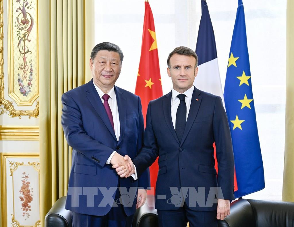 Từ ngày 5-10/5/2024, Chủ tịch Trung Quốc Tập Cận Bình công du châu Âu với các chặng dừng chân ở Pháp, Serbia và Hungary. Đây là chuyến thăm đầu tiên của một nguyên thủ quốc gia Trung Quốc tới Liên minh châu Âu (EU) trong gần 5 năm qua, được đánh giá có ý nghĩa quan trọng trong việc thúc đẩy tổng thể mối quan hệ giữa Trung Quốc với 3 nước nói riêng cũng như với EU nói chung phát triển ổn định và lành mạnh, góp phần củng cố sự ổn định trong một thế giới đầy biến động. Trong ảnh: Tổng thống Pháp Emmanuel Macron (phải) và Chủ tịch Trung Quốc Tập Cận Bình tại cuộc gặp ở Paris ngày 6/5/2024. Ảnh: THX/TTXVN