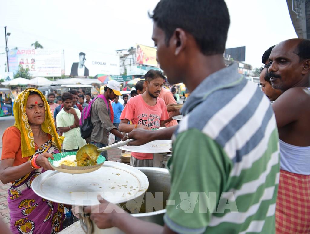 Theo báo cáo của Tổ chức Nông Lương của Liên hợp quốc (FAO) và Chương trình Lương thực thế giới (WFP), tình trạng mất an ninh lương thực nghiêm trọng có thể sẽ còn tồi tệ hơn nữa ở 20 quốc gia trong khoảng thời gian từ tháng 6 đến tháng 9/2022. Trong ảnh: Phân phát thực phẩm cho người dân tại Agartala, bang Tripura, ngày 7/6/2022. Ảnh: THX/ TTXVN