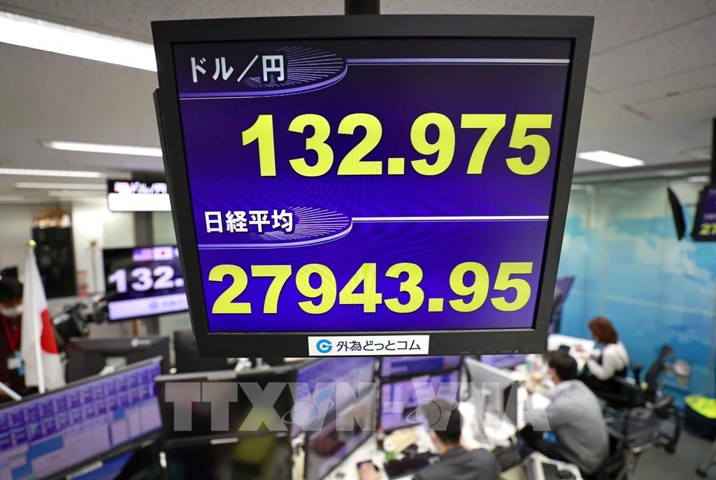Ngày 7/6/2022, tỷ giá đồng yen của Nhật Bản so với đồng USD đã giảm xuống mức thấp nhất trong 20 năm trở lại đây, với 1 USD đổi được 132,97 yen, trong bối cảnh có thông tin rằng khoảng cách lãi suất giữa Mỹ và Nhật Bản sẽ được nới rộng. Ảnh: Kyodo/ TTXVN