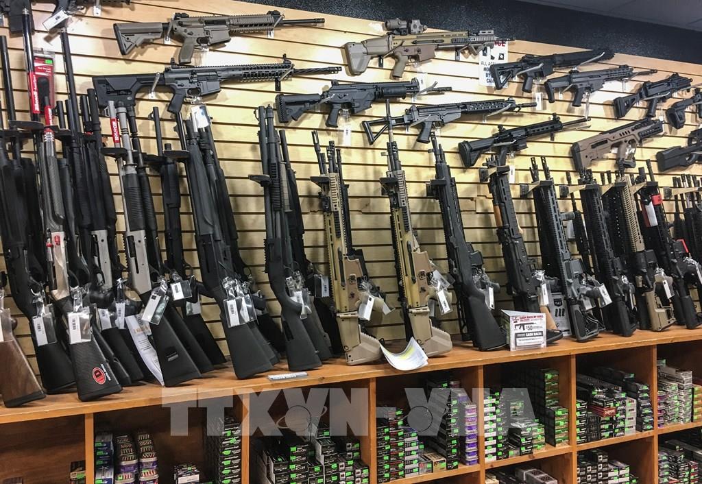 Với 223 phiếu thuận và 204 phiếu chống, Hạ viện Mỹ ngày 8/6/2022 đã thông qua một gói dự luật kiểm soát súng đạn. Gói dự luật mang tên "Đạo luật bảo vệ con em của chúng ta" bao gồm điều khoản nâng độ tuổi được phép mua vũ khí bán tự động từ 18 lên 21 tuổi, đồng thời cấm bán cho dân thường bump stock - thiết bị độ súng giúp chuyển đổi những khẩu súng bán tự động thành súng bắn nhanh như súng tự động. Trong ảnh: Súng được bày bán tại cửa hàng ở Las Vegas, bang Nevada, Mỹ. Ảnh: AFP/TTXVN