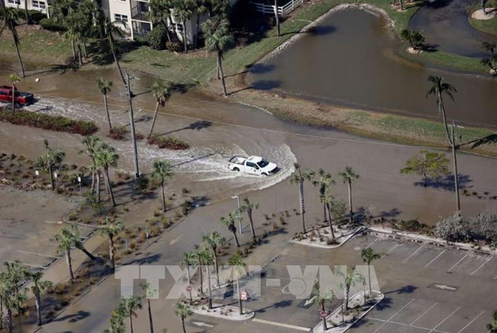 Ngày 10/10/2024, nhà chức trách bang Florida của Mỹ cho biết ít nhất 10 người đã thiệt mạng sau khi bão Milton gây lốc xoáy tàn phá bang này, đồng thời gây lũ lụt tại các vùng đất thuộc khu vực Vịnh Tampa. Cơn bão này đã càn quét Florida trước khi tiến vào Đại Tây Dương. Trên đường đi của bão, hàng loạt cây cối và cột điện bị quật đổ. Khoảng 3 triệu ngôi nhà và doanh nghiệp mất điện. Ảnh: Ngập lụt sau khi bão Milton