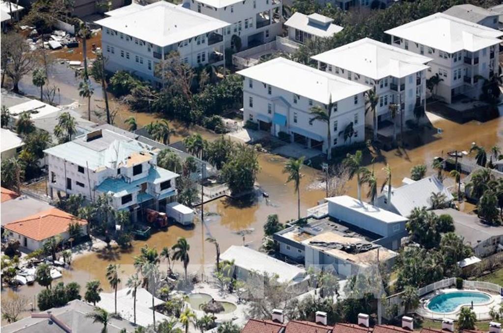Ngày 10/10/2024, nhà chức trách bang Florida của Mỹ cho biết ít nhất 10 người đã thiệt mạng sau khi bão Milton gây lốc xoáy tàn phá bang này, đồng thời gây lũ lụt tại các vùng đất thuộc khu vực Vịnh Tampa. Cơn bão này đã càn quét Florida trước khi tiến vào Đại Tây Dương. Trên đường đi của bão, hàng loạt cây cối và cột điện bị quật đổ. Khoảng 3 triệu ngôi nhà và doanh nghiệp mất điện. Ảnh: Ngập lụt sau khi bão Milton đổ bộ Siesta Key, Florida. REUTERS/TTXVN