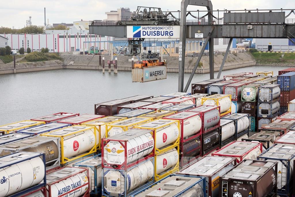 Ngày 6/10/2024, truyền thông Đức đưa tin Chính phủ nước này đã giảm dự báo và thừa nhận nền kinh tế lớn nhất châu Âu sẽ suy thoái trong năm thứ 2 liên tiếp, khi không còn hy vọng rằng tiêu dùng thúc đẩy phục hồi kinh tế. Bộ kinh tế Đức dự báo nền kinh tế quốc gia sẽ suy thoái 0,2% trong năm 2024, giảm mạnh so với ước tính trước đó là tăng trưởng 0,3%. Ảnh: Cảng hàng hóa Duisburg, Đức. Ảnh: THX/TTXVN