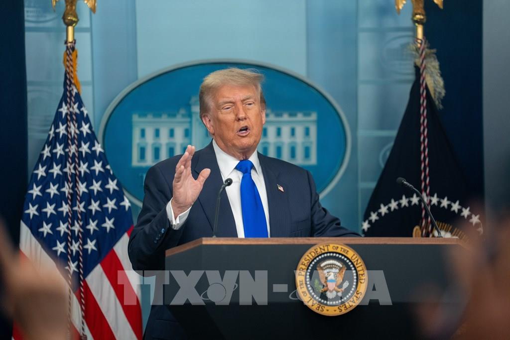 Ngày 10/7/2025, Tổng thống Mỹ Donald Trump (ảnh) tuyên bố mức thuế 35% sẽ được áp dụng đối với hàng hóa nhập khẩu từ Canada, bắt đầu từ ngày 1/8. Cũng từ thời điểm này, đồng nhập khẩu vào Mỹ sẽ bị áp mức thuế 50%, sau khi ông chủ Nhà Trắng có được đánh giá về an ninh quốc gia. Ảnh: THX/TTXVN
