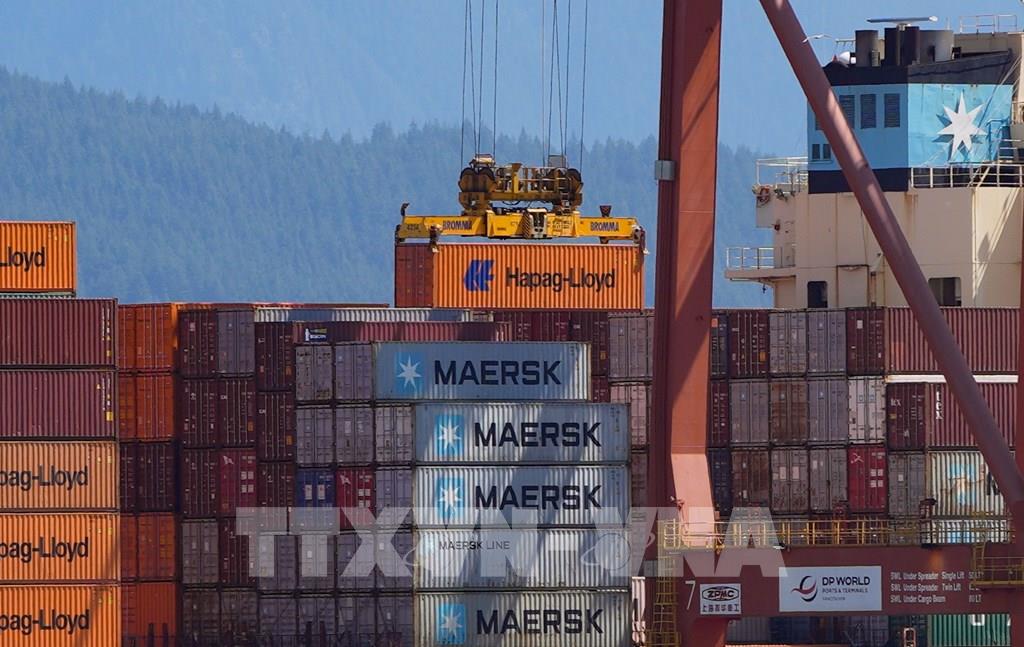 Ngày 10/7/2025, Tổng thống Mỹ Donald Trump tuyên bố mức thuế 35% sẽ được áp dụng đối với hàng hóa nhập khẩu từ Canada, bắt đầu từ ngày 1/8. Cũng từ thời điểm này, đồng nhập khẩu vào Mỹ sẽ bị áp mức thuế 50%, sau khi ông chủ Nhà Trắng có được đánh giá về an ninh quốc gia. Ảnh: Cảng container hàng hóa tại Vancouver, Canada. THX/TTXVN