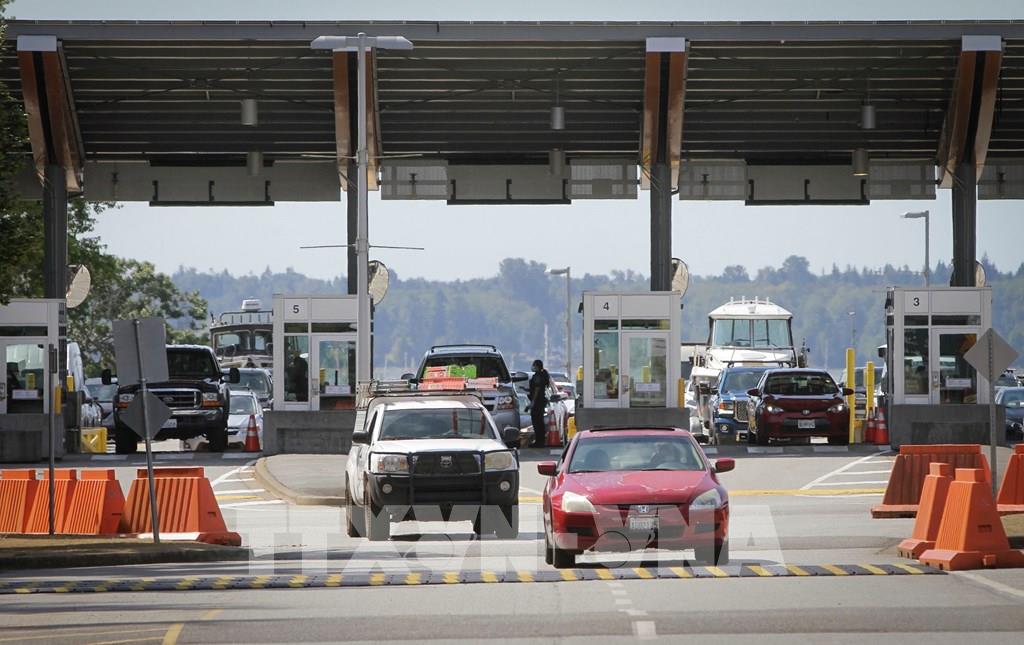 Ngày 10/7/2025, Tổng thống Mỹ Donald Trump (ảnh) tuyên bố mức thuế 35% sẽ được áp dụng đối với hàng hóa nhập khẩu từ Canada, bắt đầu từ ngày 1/8. Cũng từ thời điểm này, đồng nhập khẩu vào Mỹ sẽ bị áp mức thuế 50%, sau khi ông chủ Nhà Trắng có được đánh giá về an ninh quốc gia. Ảnh: Các phương tiện di chuyển qua cửa khẩu Peace Arch ở biên giới Mỹ - Canada. THX/TTXVN