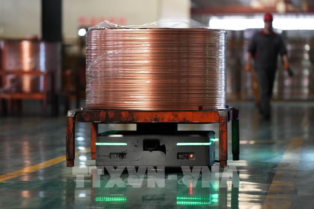 Ngày 10/7/2025, Tổng thống Mỹ Donald Trump tuyên bố mức thuế 35% sẽ được áp dụng đối với hàng hóa nhập khẩu từ Canada, bắt đầu từ ngày 1/8. Cũng từ thời điểm này, đồng nhập khẩu vào Mỹ sẽ bị áp mức thuế 50%, sau khi ông chủ Nhà Trắng có được đánh giá về an ninh quốc gia. Ảnh: Vận chuyển đồng tại nhà máy ở tỉnh Chiết Giang, Trung Quốc. THX/TTXVN