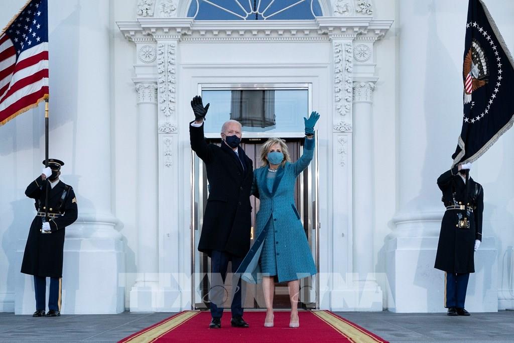 Tổng thống Mỹ Joe Biden (giữa, trái) và Đệ nhất phu nhân Jill Biden (giữa, phải) tại Nhà Trắng ở Washington, DC, ngày 20/1/2021. Ảnh: AFP/TTXVN