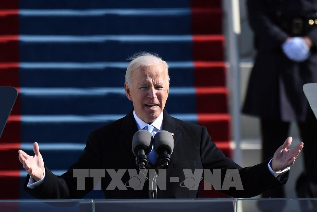Tân Tổng thống Mỹ Joe Biden phát biểu sau khi tuyên thệ nhậm chức tại Đồi Capitol ở Washington DC., ngày 20/1/2021. Ảnh: AFP/TTXVN