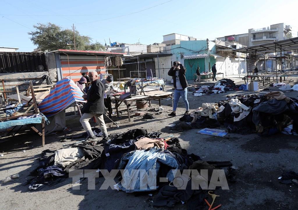 Ít nhất 32 người thiệt mạng và 110 người bị thương trong vụ đánh bom liều chết liên hoàn xảy ra ngày 21/1/2021 tại khu chợ ở quảng trường Tayaran, trung tâm thủ đô Baghdad, Iraq. Ảnh: THX/ TTXVN