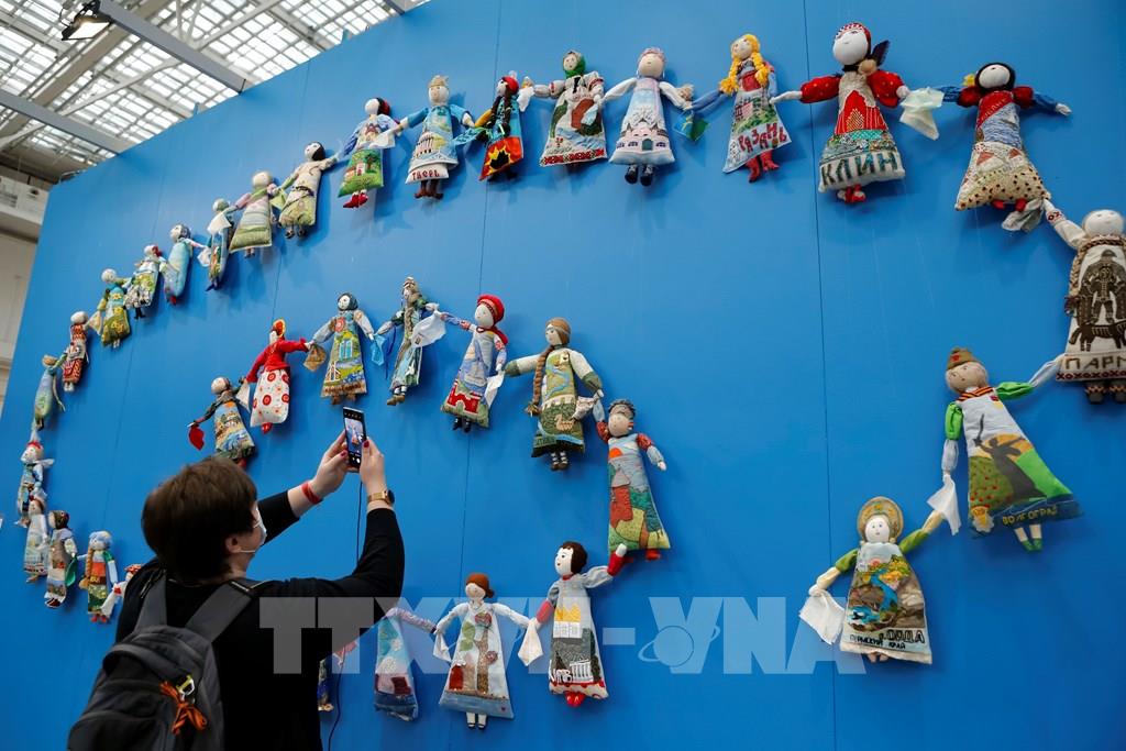 Triển lãm búp bê quốc tế mang tên "Nghệ thuật búp bê" diễn ra tại Moskva, Nga, từ ngày 19-22/2/2021. Khoảng 10.000 tác phẩm búp bê của hơn 1.000 nghệ sĩ đến từ nhiều quốc gia được trưng bày tại triển lãm. Ảnh: THX/ TTXVN
