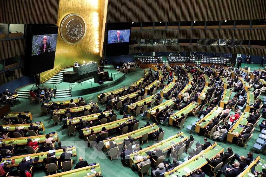 Hơn 100 nhà lãnh đạo và quan chức cấp cao trên toàn thế giới ngày 21/9/2021 đã tham dự trực tiếp phiên khai mạc Tuần lễ cấp cao kỳ họp Đại hội đồng Liên hợp quốc (ĐHĐ LHQ) khóa 76 tại trụ sở LHQ ở New York (Mỹ), nhằm cùng nhau tìm ra giải pháp cho những thách thức lớn nhất hiện nay: đại dịch COVID-19, thực trạng thế giới chia rẽ và vấn đề ứng phó với biến đổi khí hậu. Ảnh: THX/ TTXVN