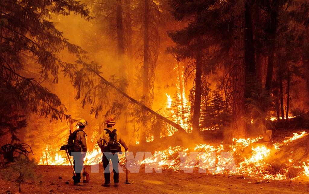Tại Mỹ, đợt cháy rừng lớn nhất bang California đã thiêu trụi một thị trấn nhỏ, phá hủy những tòa nhà cổ tại đây chỉ trong vài giờ sau khi người dân ở khu vực này được lệnh sơ tán. Gần 5.000 nhân viên cứu hỏa đang tham gia dập tắt đám cháy được cho là lớn thứ 6 trong lịch sử cháy rừng ở bang này. Trong ảnh: Hiện trường vụ cháy rừng tại Plumas, California, Mỹ, ngày 23/7/2021. Ảnh: AFP/ TTXVN