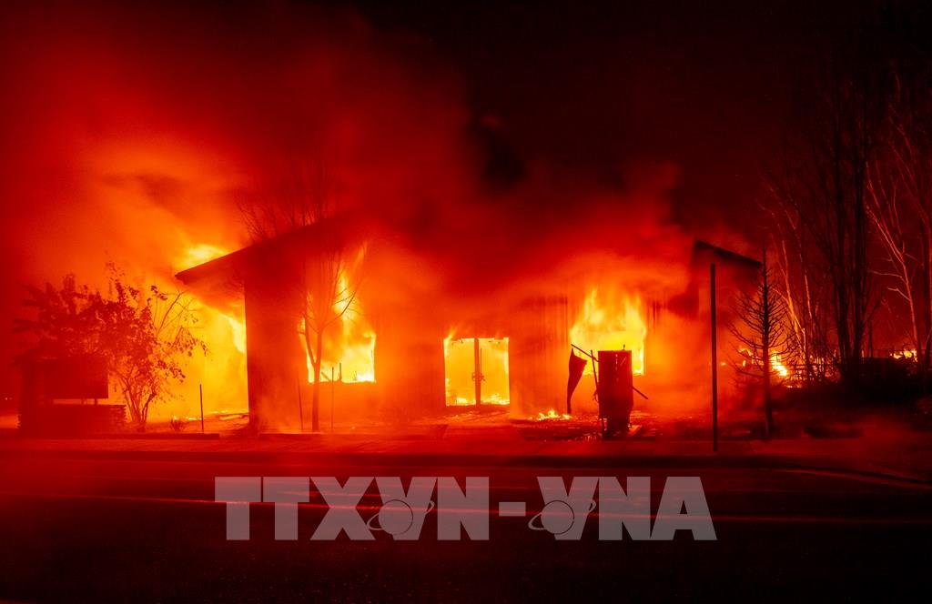 Tại Mỹ, đợt cháy rừng lớn nhất bang California đã thiêu trụi một thị trấn nhỏ, phá hủy những tòa nhà cổ tại đây chỉ trong vài giờ sau khi người dân ở khu vực này được lệnh sơ tán. Gần 5.000 nhân viên cứu hỏa đang tham gia dập tắt đám cháy được cho là lớn thứ 6 trong lịch sử cháy rừng ở bang này. Trong ảnh: Ngôi nhà bị thiêu rụi trong đám cháy rừng tại Greenville, California, Mỹ, ngày 4/8/2021. Ảnh: AFP/ TTXVN