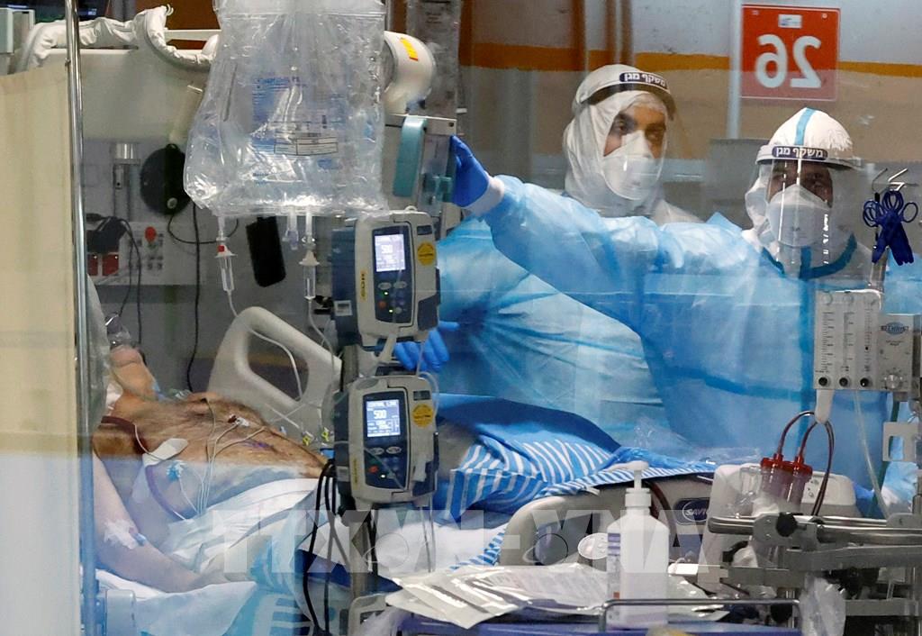 Số bệnh nhân COVID-19 trên toàn thế giới điểm mốc 200 triệu ca vào sáng 4/8/2021, trong bối cảnh tốc độ lây lan dịch trên toàn thế giới đang trở lại mức báo động. Mức độ lây lan hiện nay đã tương đương giai đoạn điểm đỉnh dịch hồi tháng 7 năm ngoái, tức là cứ 2 ngày có thêm 1 triệu ca nhiễm mới, nguyên nhân chủ yếu là do biến thể Delta của virus SARS-CoV-2. Trong ảnh: Bệnh nhân COVID-19 được điều trị tại bệnh viện ở Tel Aviv, Israel. Ảnh: AFP/ TTXVN