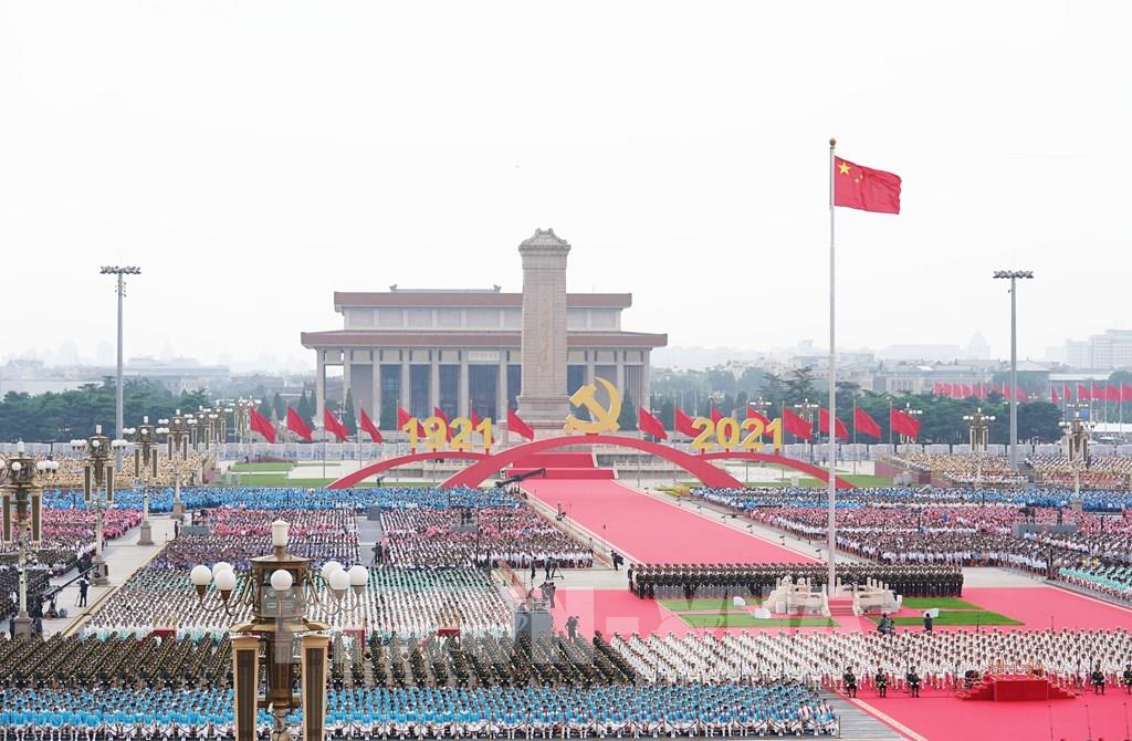 Sáng 1/7/2021, tại Quảng trường Thiên An Môn ở thủ đô Bắc Kinh, lễ kỷ niệm 100 năm thành lập Đảng Cộng sản Trung Quốc đã diễn ra trọng thể với sự tham dự của Tổng Bí thư Ban Chấp hành Trung ương Đảng Cộng sản Trung Quốc, Chủ tịch nước, Chủ tịch Quân ủy Trung ương Tập Cận Bình, cùng các đồng chí lãnh đạo Đảng, Nhà nước Trung Quốc và đông đảo khách mời quốc tế. Ảnh: THX/ TTXVN