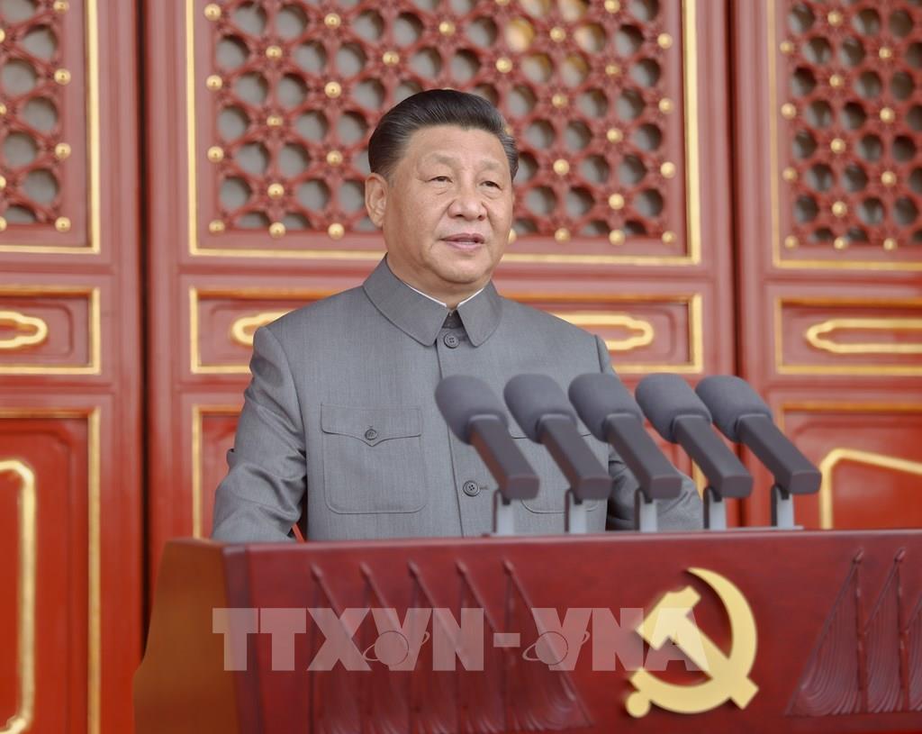 Sáng 1/7/2021, tại Quảng trường Thiên An Môn ở thủ đô Bắc Kinh, lễ kỷ niệm 100 năm thành lập Đảng Cộng sản Trung Quốc đã diễn ra trọng thể với sự tham dự của Tổng Bí thư Ban Chấp hành Trung ương Đảng Cộng sản Trung Quốc, Chủ tịch nước, Chủ tịch Quân ủy Trung ương Tập Cận Bình (trong ảnh), cùng các đồng chí lãnh đạo Đảng, Nhà nước Trung Quốc và đông đảo khách mời quốc tế. Ảnh: THX/ TTXVN