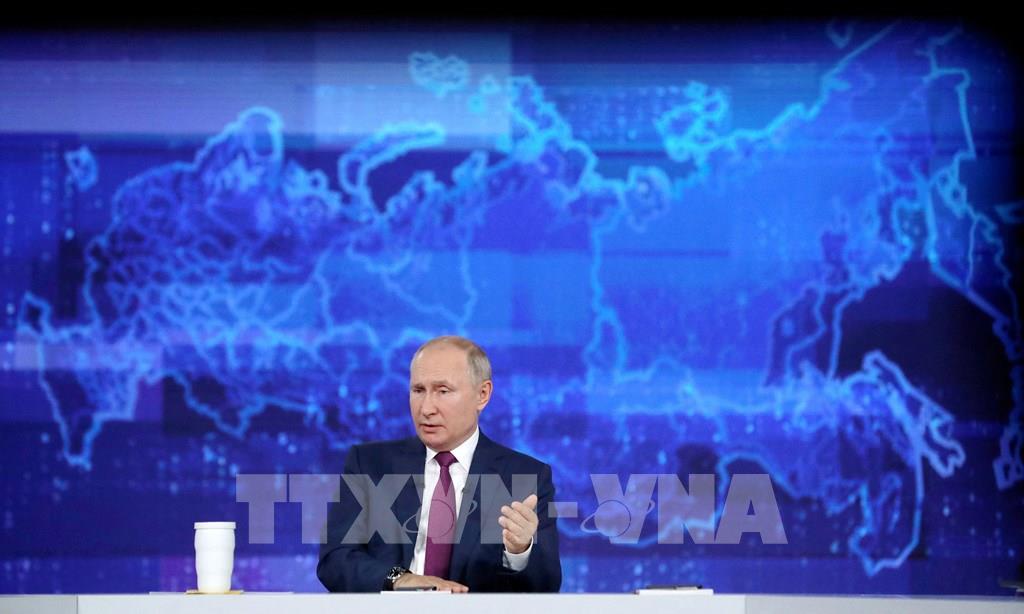 Hàng loạt vấn đề người dân Nga quan tâm hàng đầu hiện nay, như đại dịch COVID-19 và tiêm chủng vaccine, lạm phát, quản lý mạng xã hội, quan hệ với các nước láng giềng và các nước phương Tây..., đã được Tổng thống Nga Vladimir Putin (trong ảnh) chia sẻ thẳng thắn trong chương trình trực tiếp “Đường dây nóng với Tổng thống Vladimir Putin” ngày 30/6/2021. Ảnh: AFP/ TTXVN