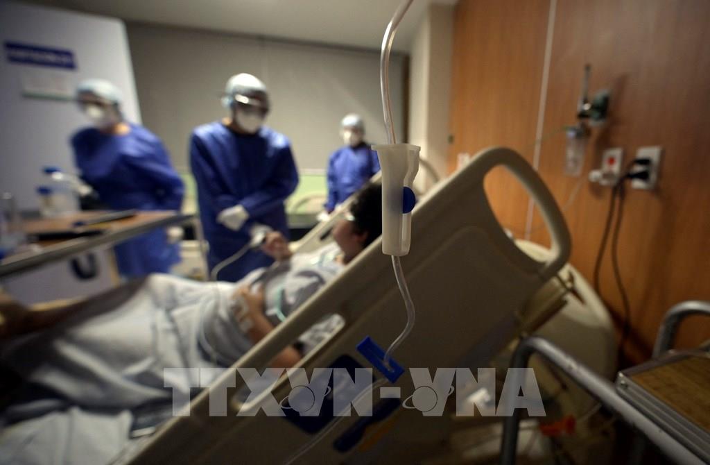 Báo Le Figaro ngày 11/8/2021 đã đăng tải nghiên cứu của các chuyên gia y tế về dịch bệnh COVID-19 cho biết sau các biến thể đến từ Anh, Brazil hoặc Ấn Độ, các biến thể mới xuất phát từ Colombia và Peru đang được các nhà khoa học theo dõi chặt chẽ. Trong ảnh: Nhân viên y tế điều trị cho bệnh nhân COVID-19 tại bệnh viện ở Portsmouth, Anh. Ảnh: AFP/ TTXVN