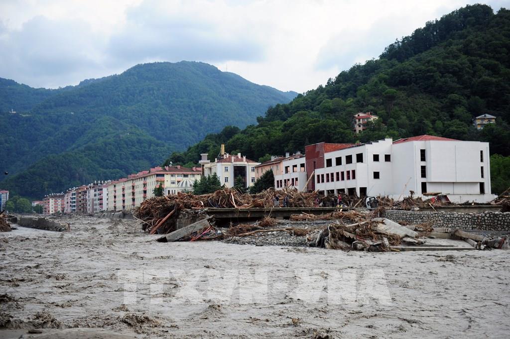 Lũ lụt, cháy rừng và nắng nóng đang đe dọa nhiều quốc gia tại châu Âu. Các chuyên gia khí tượng cho rằng biến đổi khí hậu là nguyên nhân làm gia tăng tần suất, cũng như cường độ của các hình thái thời tiết cực đoan. Trong ảnh: Cảnh ngập lụt tại huyện Bozkurt, tỉnh Kastamonu, Thổ Nhĩ Kỳ, ngày 12/8/2021. Ảnh: THX/ TTXVN