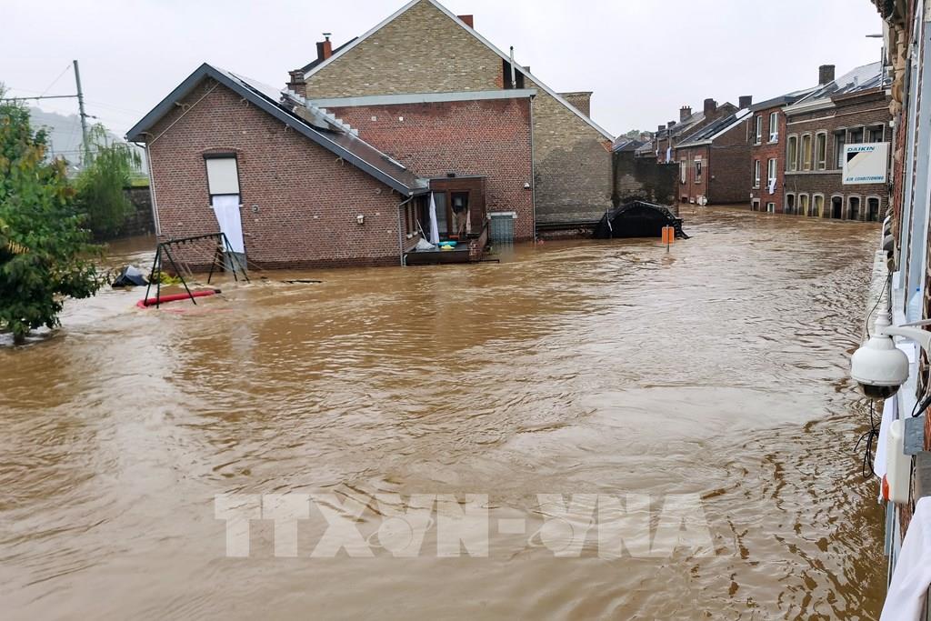 Đức và Bỉ tiếp tục ghi nhận thêm nhiều người thiệt mạng do mưa lớn và lũ lụt trong 2 ngày qua. Tại Đức, mưa, lũ lụt đã khiến ít nhất 58 người thiệt mạng và hàng chục người mất tích khi nước lũ vẫn tiếp tục dâng, khiến nhiều ngôi nhà có nguy cơ bị sập. Trong khi đó, tính đến chiều 15/7/2021, ít nhất 7 người đã thiệt mạng do lũ lụt tại các địa phương ở Bỉ. Trong ảnh: Cảnh ngập lụt sau mưa lớn tại Liege, Bỉ, ngày 15/7/2021. Ảnh: THX/ TTXVN
