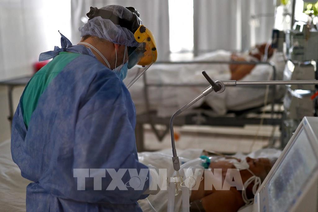 Tổ chức Y tế thế giới (WHO) thông báo đã có thêm gần 3 triệu ca mắc COVID-19 và hơn 55.000 ca tử vong trên toàn thế giới trong tuần qua. Theo WHO, biến thể Delta có khả năng lây lan cao hiện đã xuất hiện tại hơn 110 nước trên thế giới. Trong ảnh: Nhân viên y tế điều trị cho bệnh nhân COVID-19 tại bệnh viện ở Cordoba, Argentina, ngày 6/7/2021. Ảnh: AFP/ TTXVN