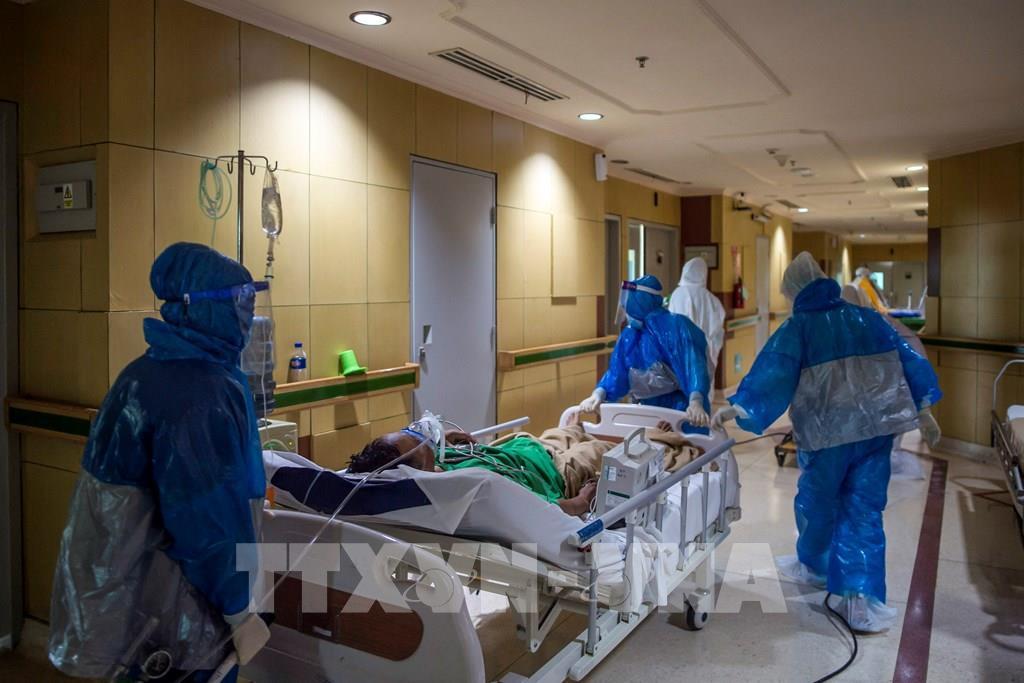 Tổ chức Y tế thế giới (WHO) thông báo đã có thêm gần 3 triệu ca mắc COVID-19 và hơn 55.000 ca tử vong trên toàn thế giới trong tuần qua. Theo WHO, biến thể Delta có khả năng lây lan cao hiện đã xuất hiện tại hơn 110 nước trên thế giới. Trong ảnh: Nhân viên y tế chuyển bệnh nhân COVID-19 tại bệnh viện ở Surabaya, Đông Java, Indonesia, ngày 8/7/2021. Ảnh: AFP/ TTXVN
