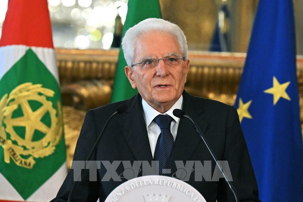 Ngày 21/7/2022, sau khi chấp thuận quyết định từ chức của Thủ tướng Italy Mario Draghi, Tổng thống Italy Sergio Mattarella đã ký sắc lệnh giải tán Thượng viện và Hạ viện, chuẩn bị cho cuộc bầu cử trước thời hạn dự kiến diễn ra vào ngày 25/9. Trong ảnh: Tổng thống Italy Sergio Mattarella phát biểu với báo giới tại Rome ngày 21/7/2022. Ảnh: AFP/ TTXVN