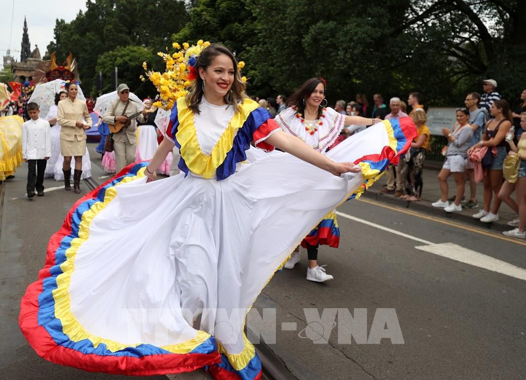 Lễ hội hóa trang Edinburgh tràn đầy màu sắc và âm nhạc diễn ra tại Edinburgh, Anh ngày 17/7/2022, với sự tham gia của hơn 800 nghệ sĩ và vũ công trên toàn thế giới. Ảnh: THX/ TTXVN
