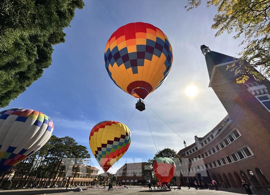 09:03' - 29/12/2022Tại trường Cao đẳng sư phạm Đà Lạt, UBND thành phố Đà Lạt (Lâm Đồng) phối hợp với các đơn vị tổ chức khai mạc Ngày hội khinh khí cầu Đà Lạt 2022 nằm trong khuôn khổ Festival hoa Đà Lạt năm 2022 đang diễn ra. Đây là dịch vụ lần đầu tiên được triển khai, áp dụng cho du khách khi đến tham quan, nghỉ dưỡng tại phố núi Đà Lạt để ngắm toàn cảnh thành phố trên độ cao 200m hoặc bay treo tại sân trường cao đẳng sư phạm Đà Lạt với độ cao 50m. Sự kiện diễn ra từ 28/12/2022 - 1/1/2023.