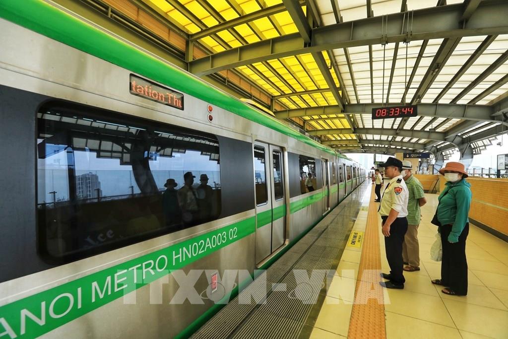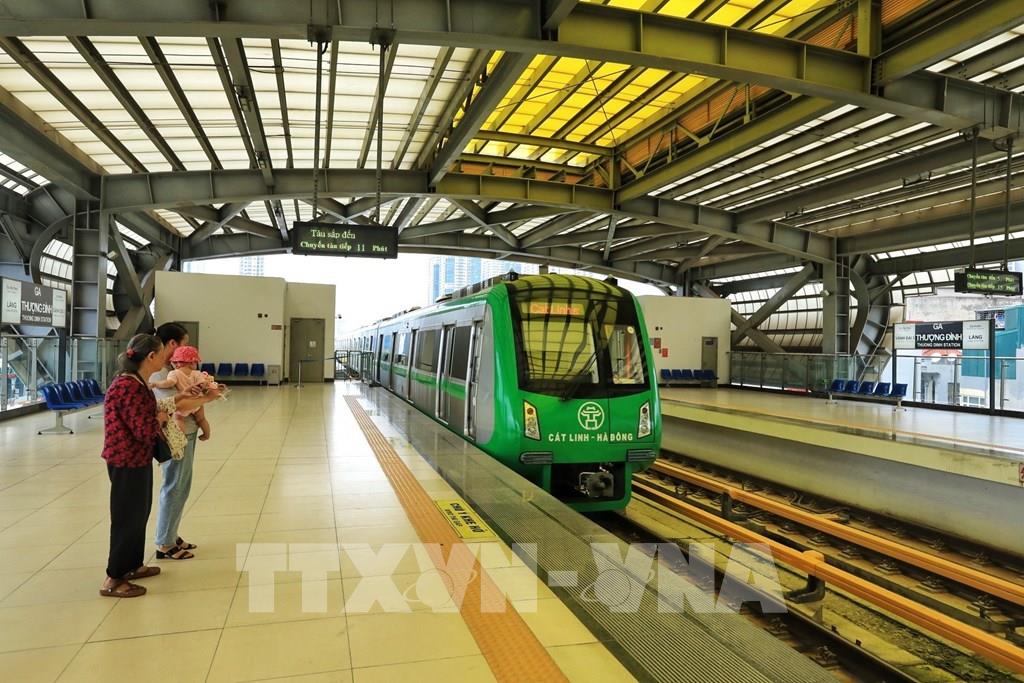 Tuyến tàu điện Cát Linh - Hà Đông chạy trong dịp nghỉ lễ 2/9. Ảnh: Tuấn Anh - TTXVN