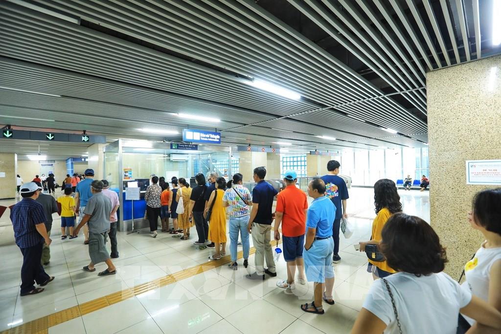 Người dân xếp hàng mua vé tàu điện Cát Linh - Hà Đông. Ảnh: Tuấn Anh - TTXVN