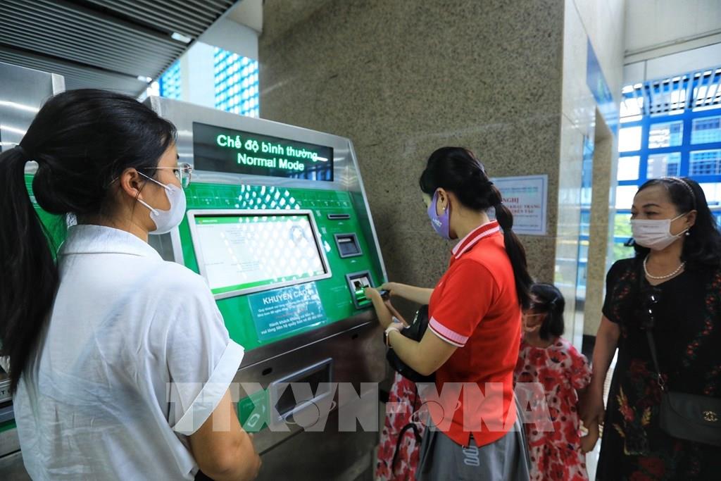 Đi theo từng tuyến, người dân có thể mua vé tại cây bán vé tự động. Ảnh: Tuấn Anh - TTXVN
