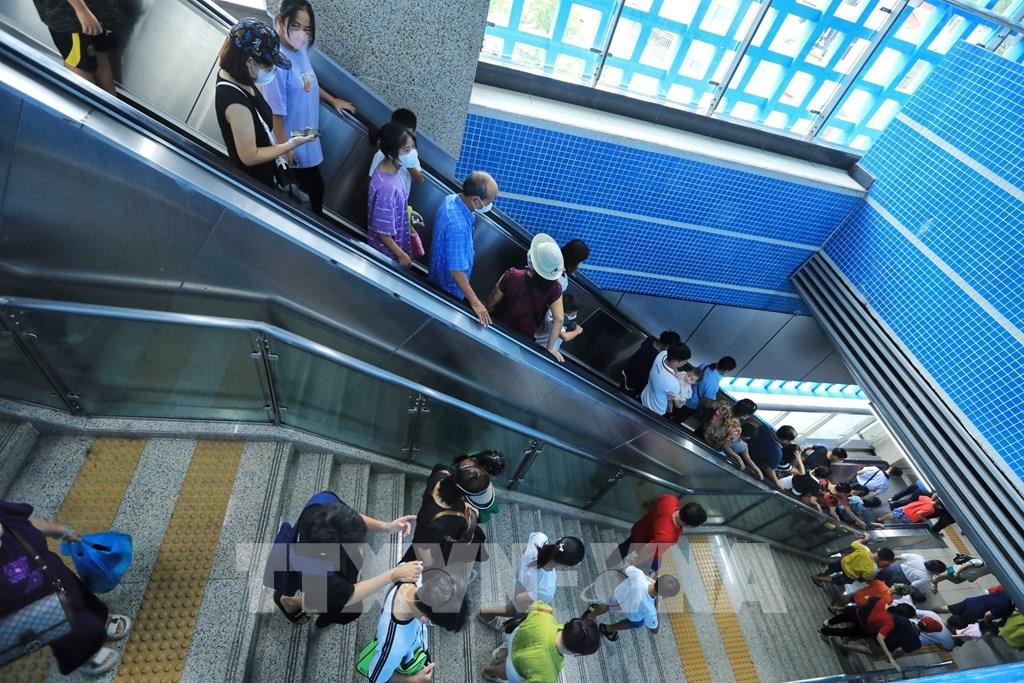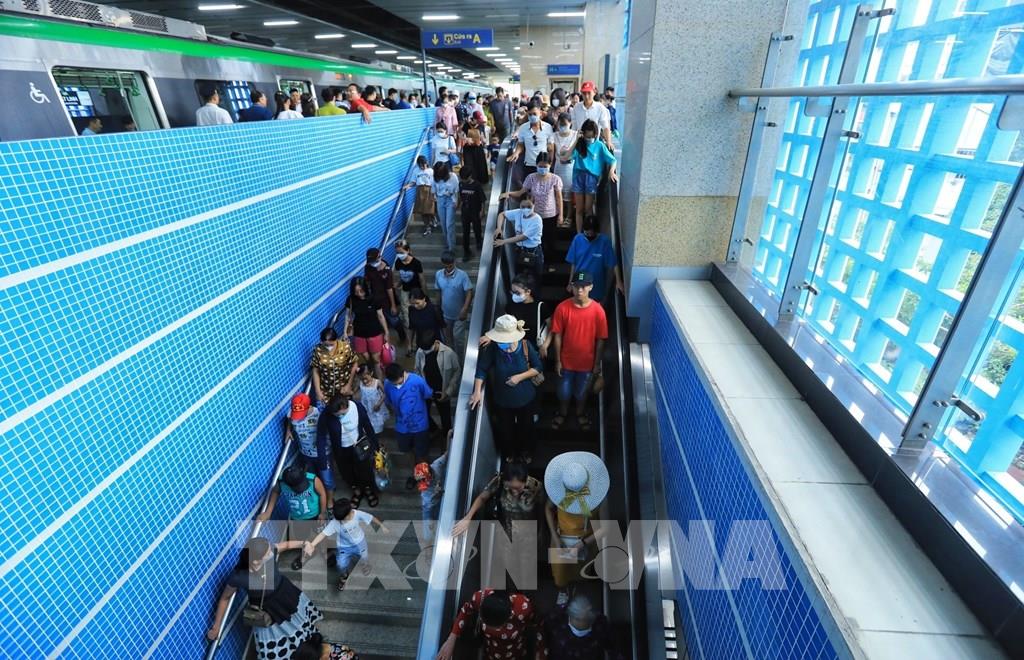 Lối lên xuống các nhà ga đều đông kín hành khách. Ảnh: Tuấn Anh - TTXVN